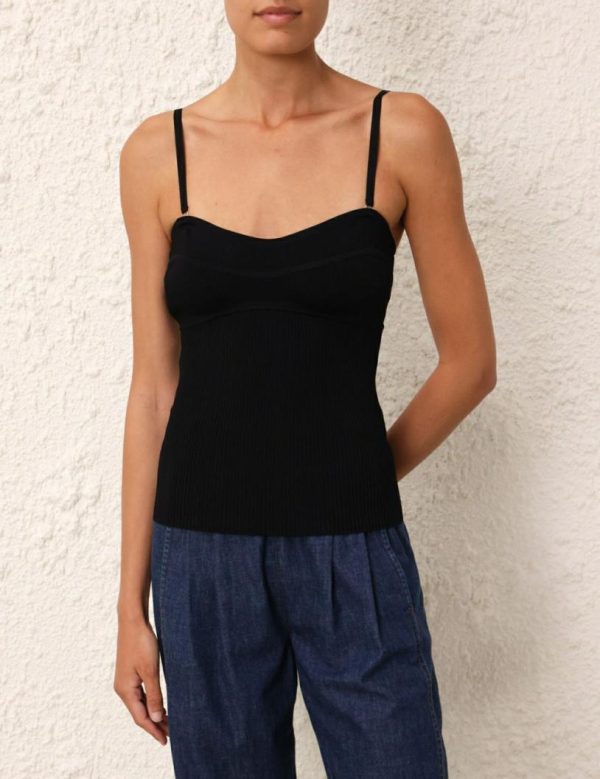 Zimmermann Alight Panelled Rib Tank Black | Women Tops