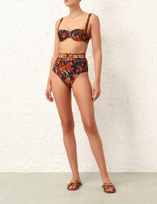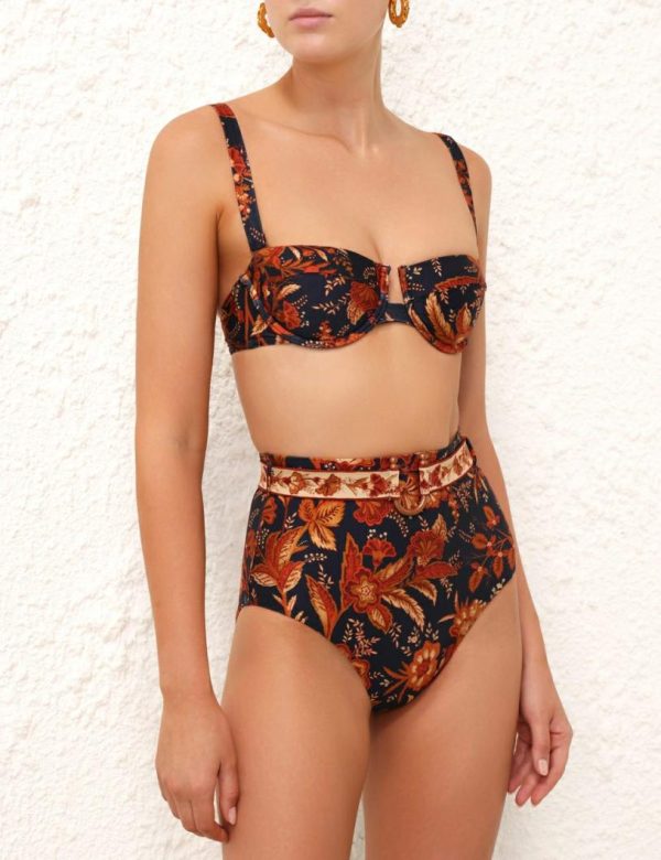 The Junie Balconette Bra in Dark Navy Floral from our Resort Swim 2024 Collection. A shiny lycra bra featuring boning along the side seams and removable straps.