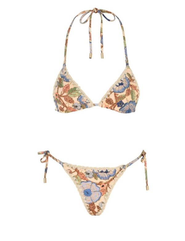 Zimmermann Junie Crochet Edge Bikini Ivory/blue Floral | Women Bikinis