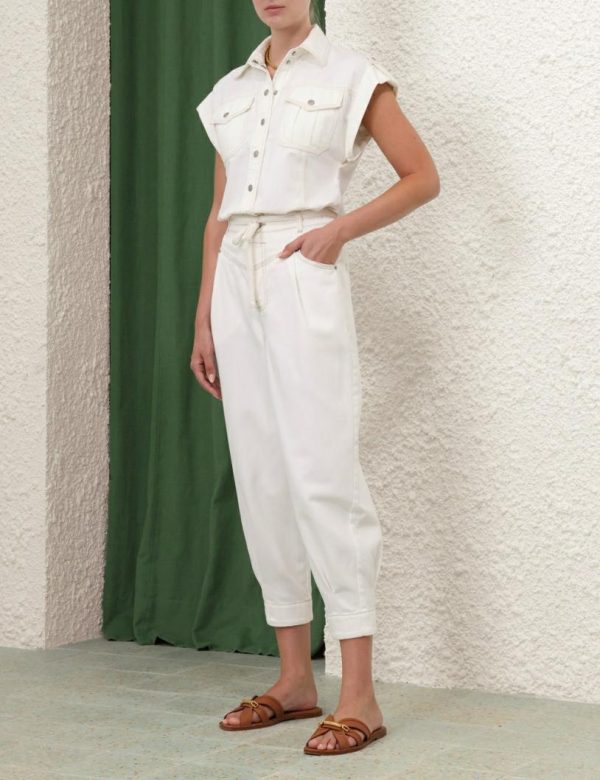 Zimmermann Junie Denim Utility Pant Vintage White | Women Shorts & Pants