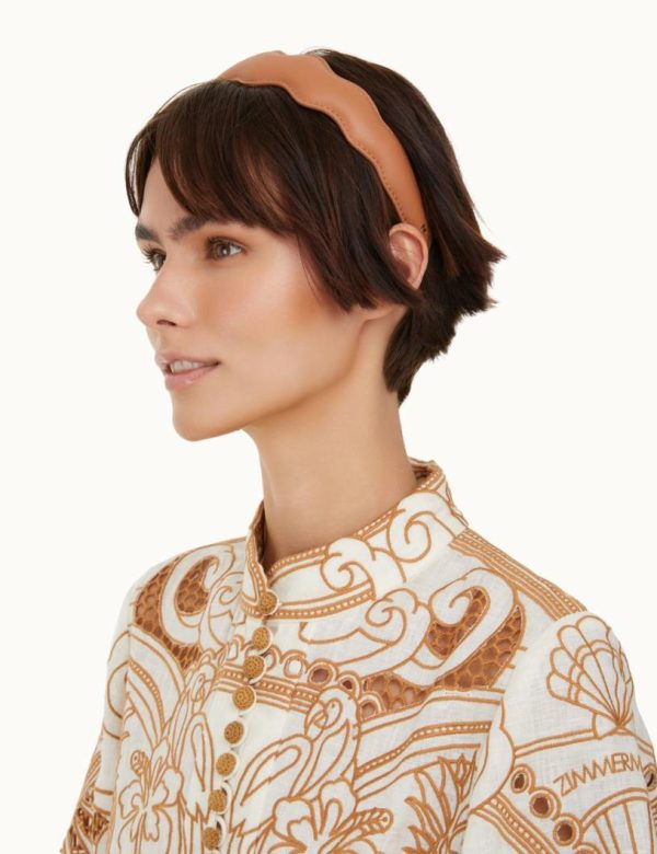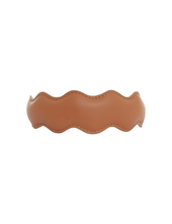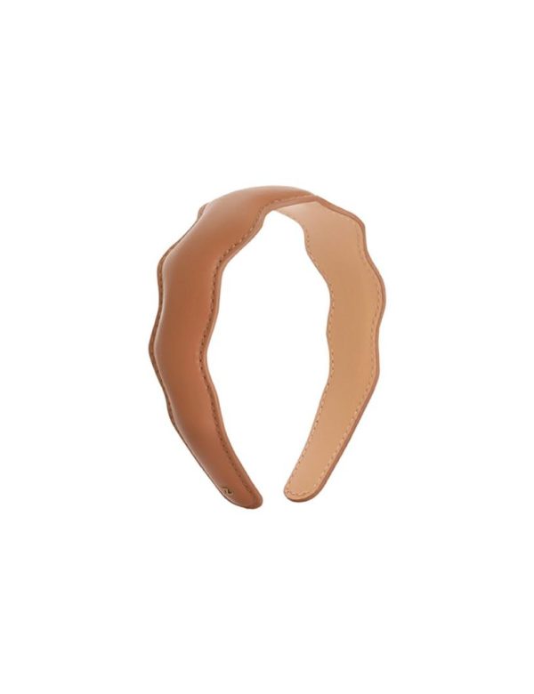 The Leather Wave Headband in Tan from our Summer Swim 2023 Collection. A headband featuring scalloped edges and topstitching throughout.