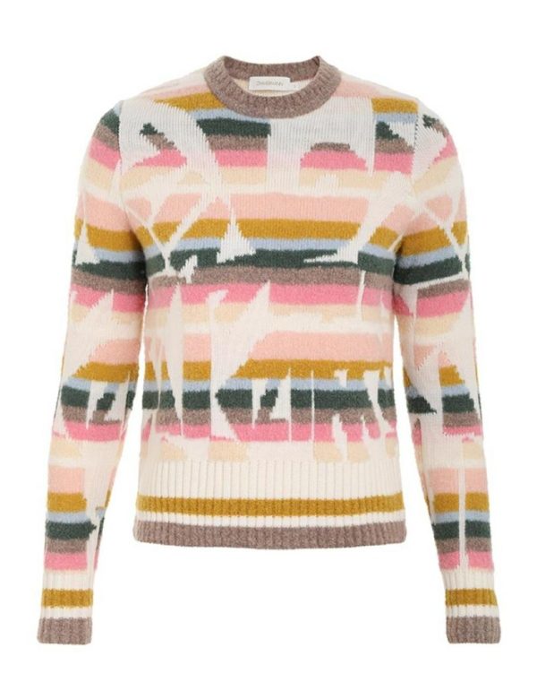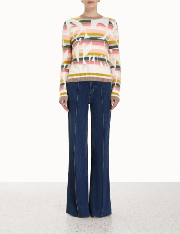 The Lyrical Jacquard Sweater in Multi from our Fall 2023 Collection, Luminosity. A jacquard knit featuring a boucle yarn and ribbed, contrast edges throughout.