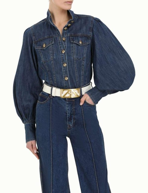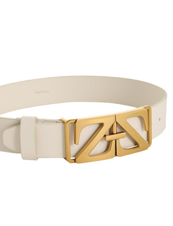 The Monogram Waist Belt in Cream from our Fall 2023 Collection, Luminosity. A leather waist belt featuring a custom monogram buckle.