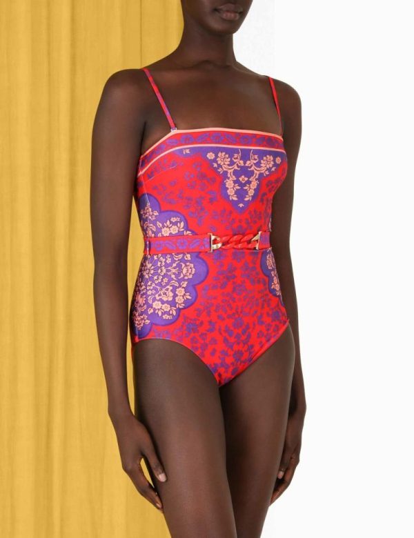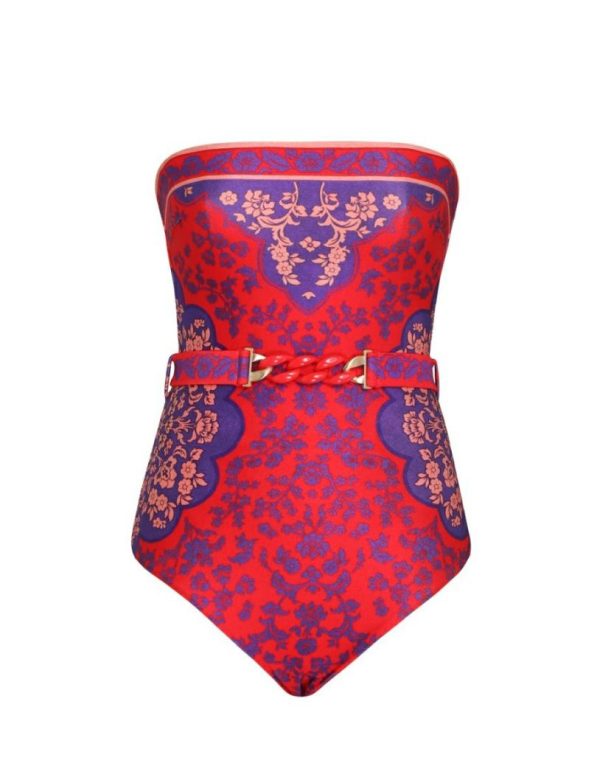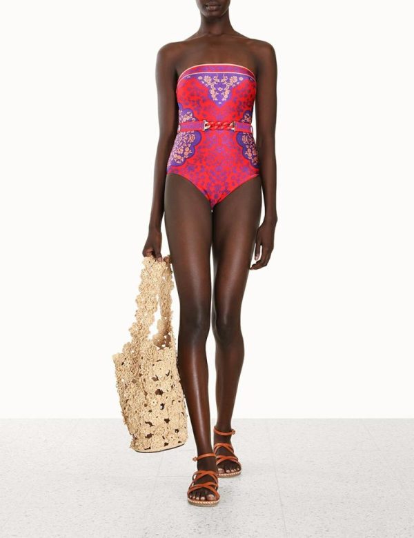 Zimmermann Raie Chain Link Bandeau PC Purple/red Floral | Women One Pieces