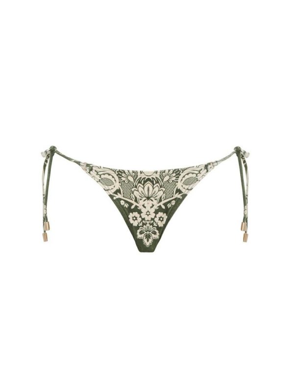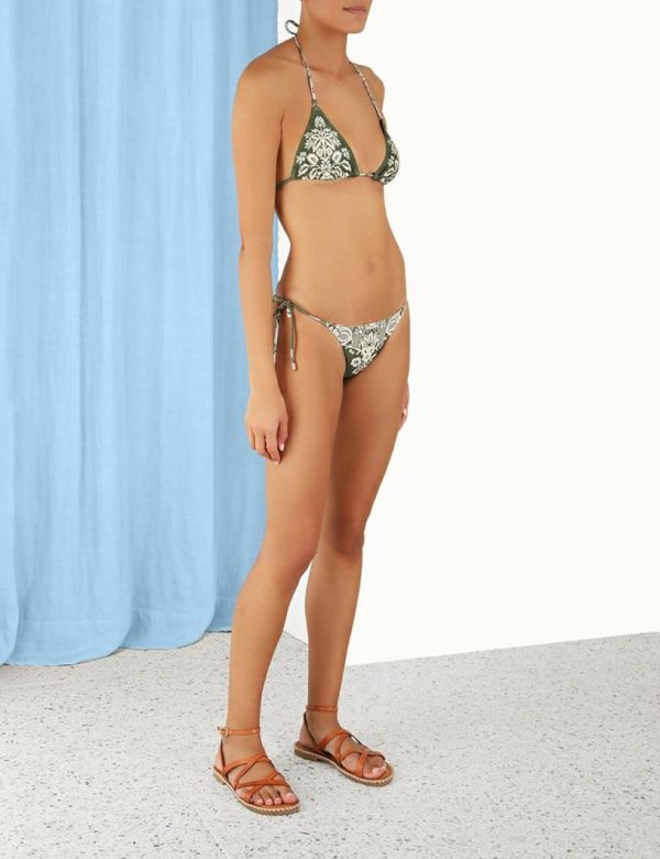 The Separates Mini Tri Pant in Khaki/Cream from our Summer Swim 2023 Collection. A skinny low rise bikini pant constructed from Italian lycra featuring self tie side straps.