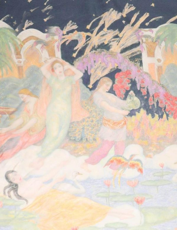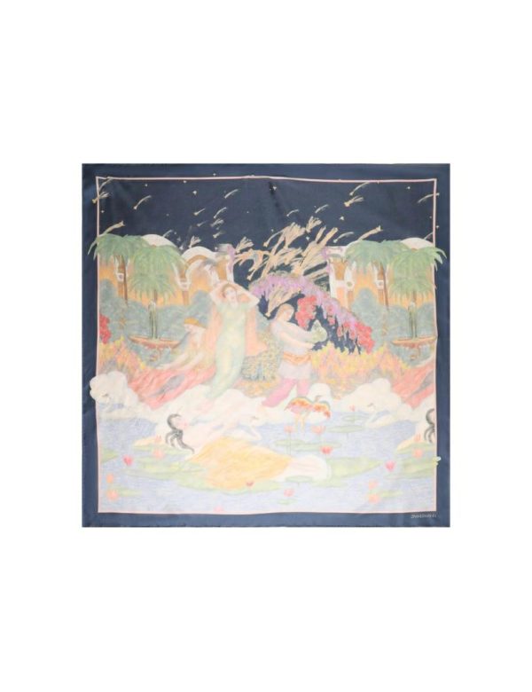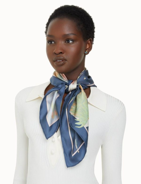 The Silk Square Scarf in Paradise Print from our Fall 2023 Collection, Luminosity. A silk square scarf featuring a customised placement print and fine rolled hem.