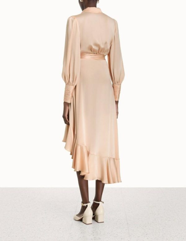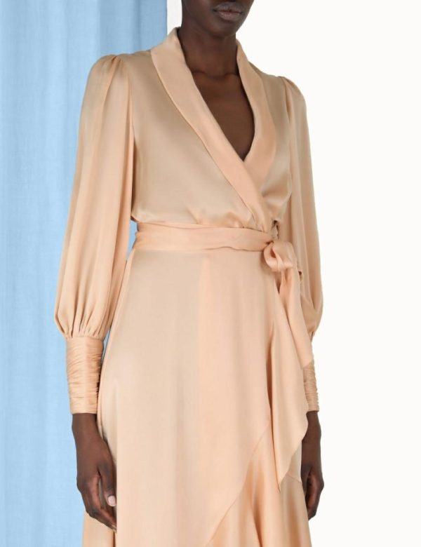 Zimmermann Silk Wrap Midi Dress Sand | Women Clothing