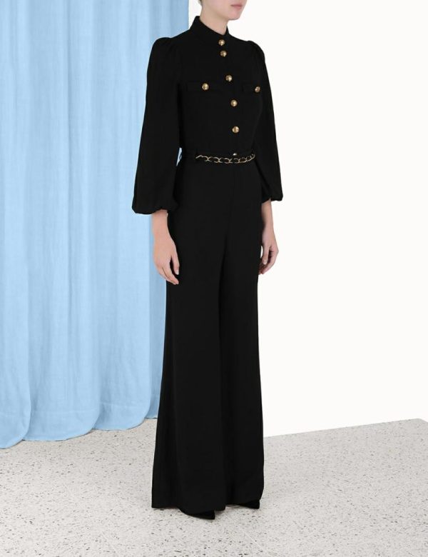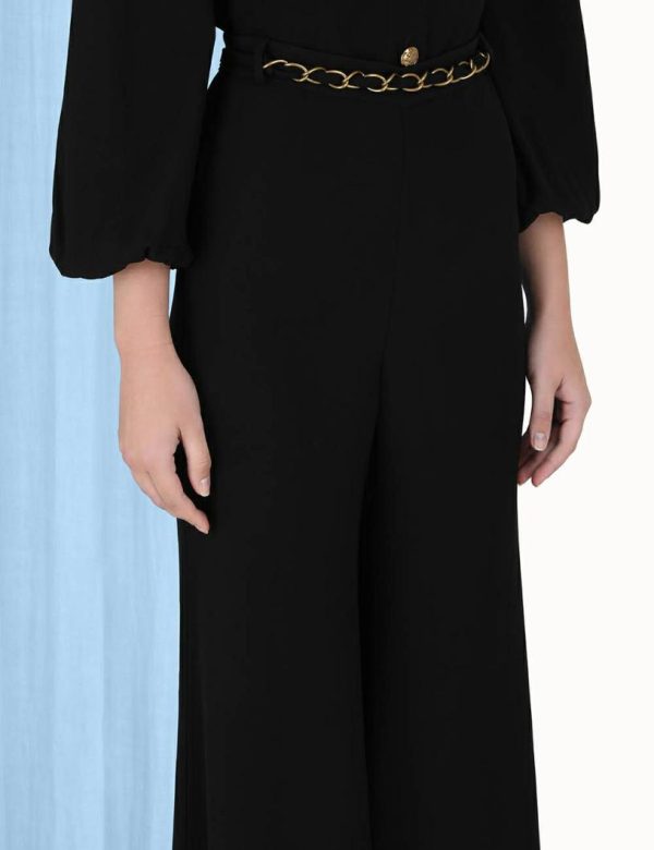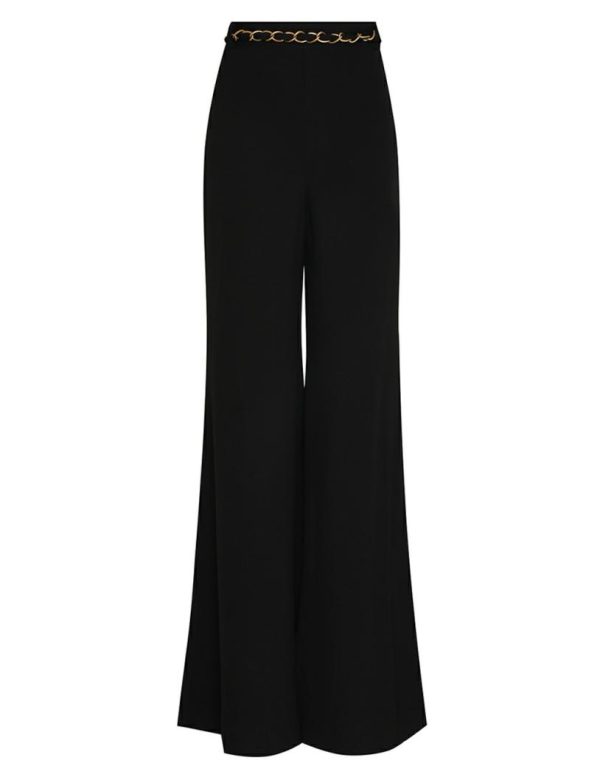 The Skinny Flare Pant in Black from our Fall 2023 Collection, Luminosity. A high waisted flared pant featuring a gold chain belt.