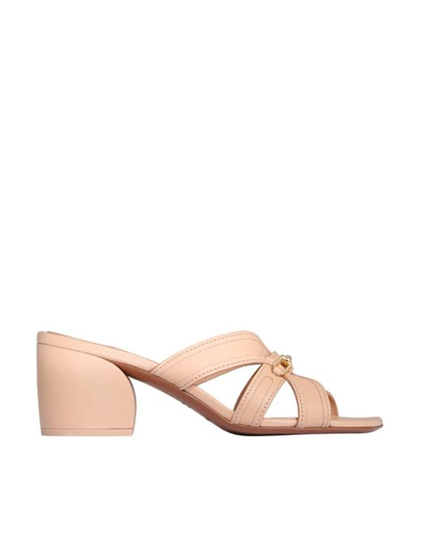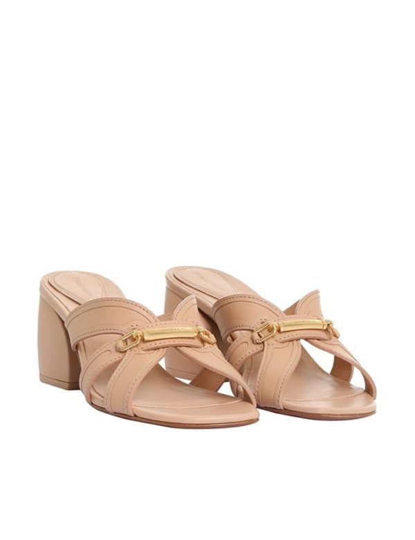 The Prisma Slide in Dune from our Resort 2024 Collection, Matchmaker. A leather mule heel featuring and Zimmermann branded hardware.